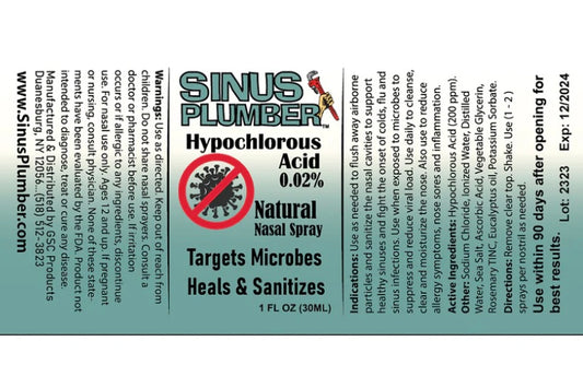 Sinus Plumber Antimicrobial Hypochlorous Acid Nasal Spray for Removing Bacteria, 1 Fl Oz