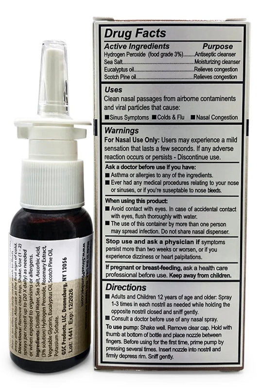 Sinus Plumber Hydrogen Peroxide Nasal Spray for Cold and Flu, 1 Fl Oz